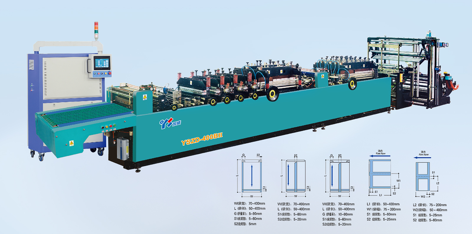 制袋長度:50-400mm(超長時可采用倍送裝置),制袋長度超過320mm 以上應采用倍送功能。